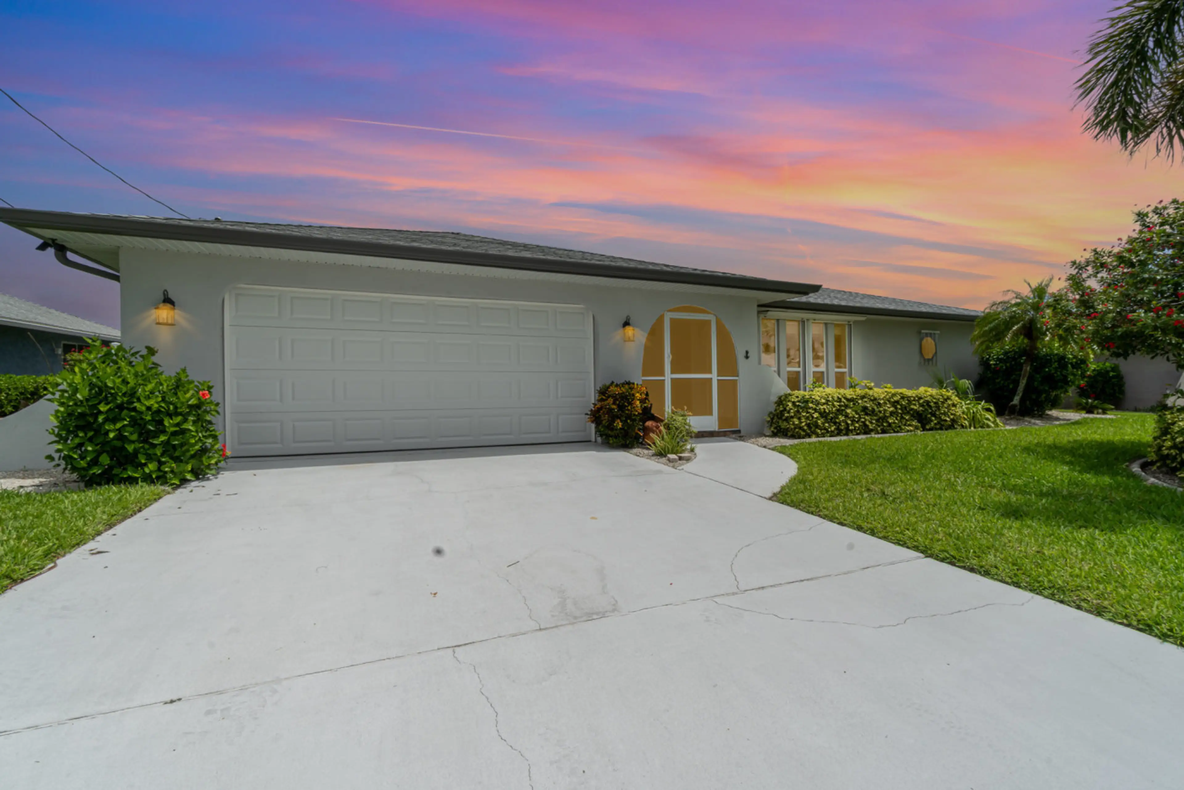 Welcome to Ocean Reflections, your perfect Gulf access retreat in Cape Coral. This charming, beach-themed home offers a private boat dock for easy water access and a heated pool ideal for soaking up the sun. Inside, enjoy a fun-filled atmosphere with games like foosball and a shuffleboard table or s...